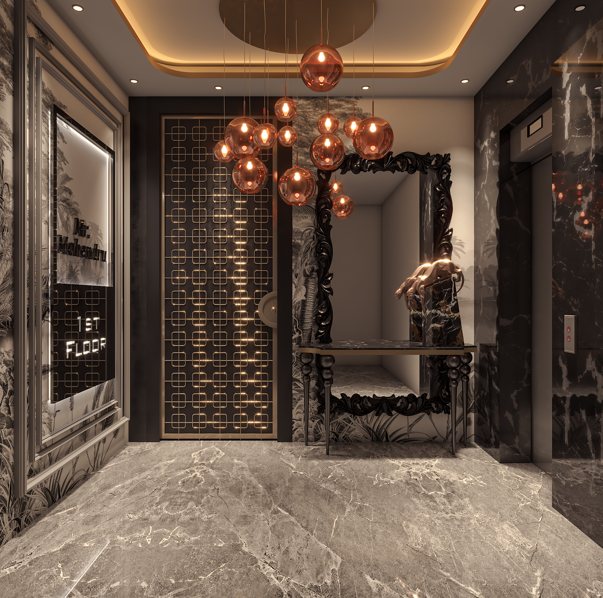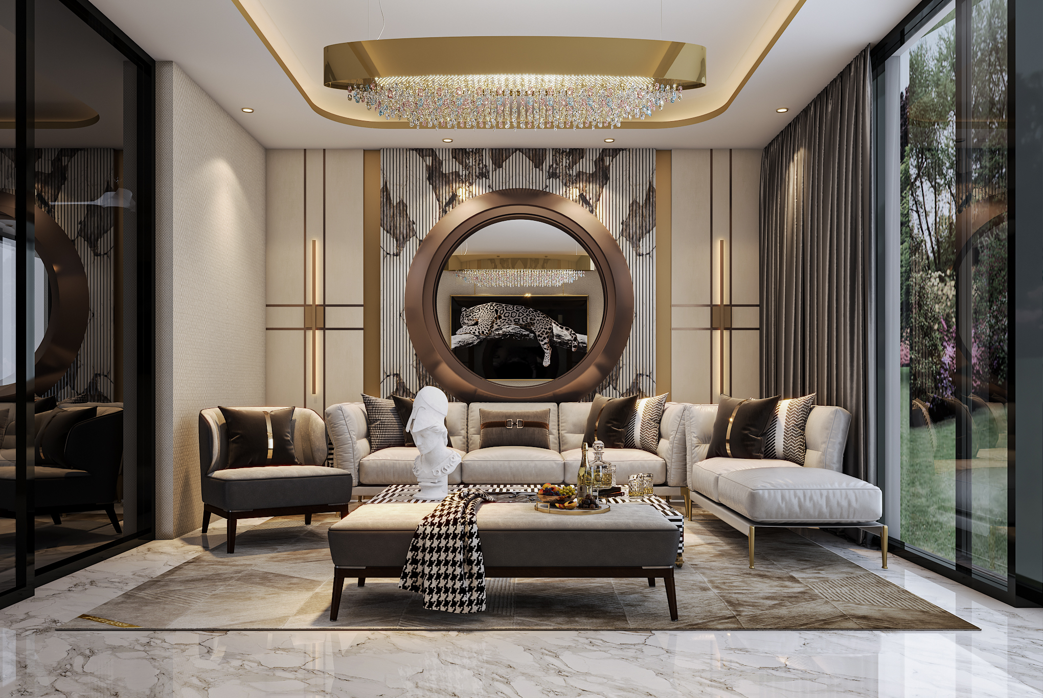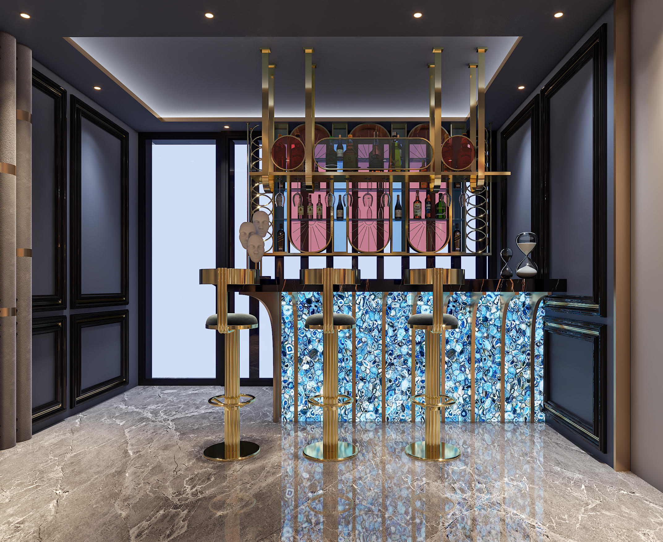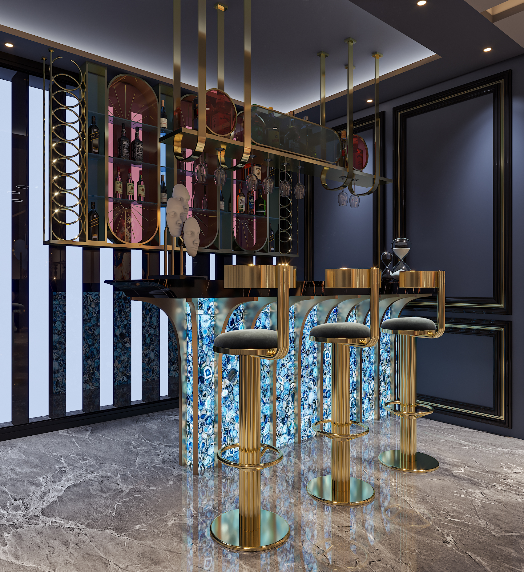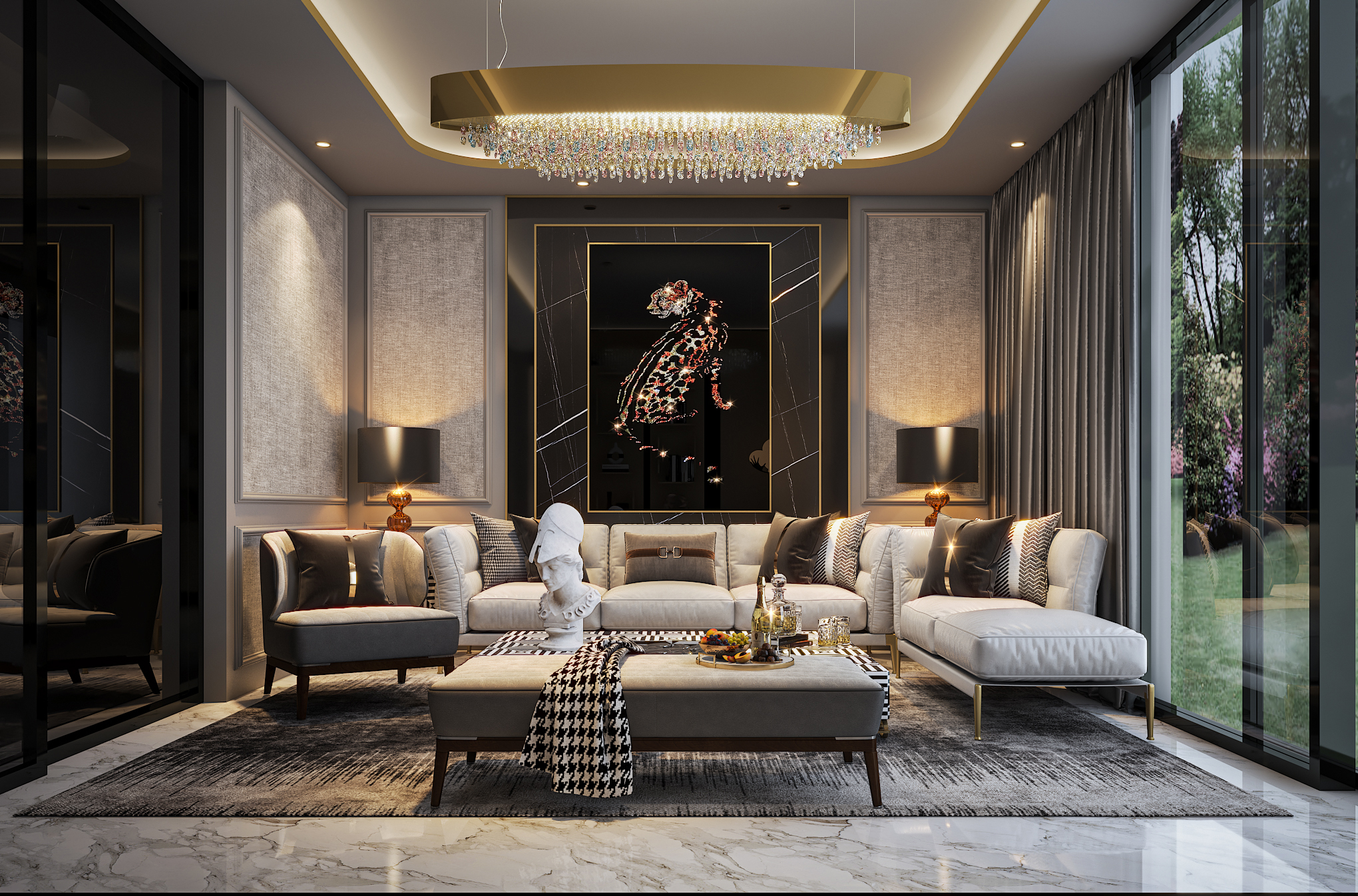 This luxury interior design project is a perfect blend of opulence and contemporary flair. Featuring custom furniture, a dramatic statement chandelier, and an oversized modern art piece, it establishes a sophisticated and exclusive dining room experience.