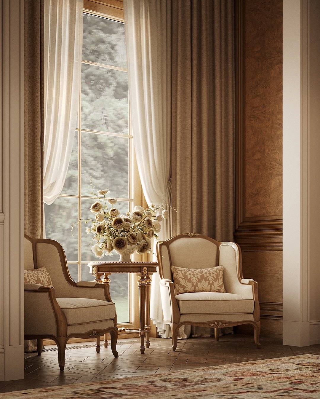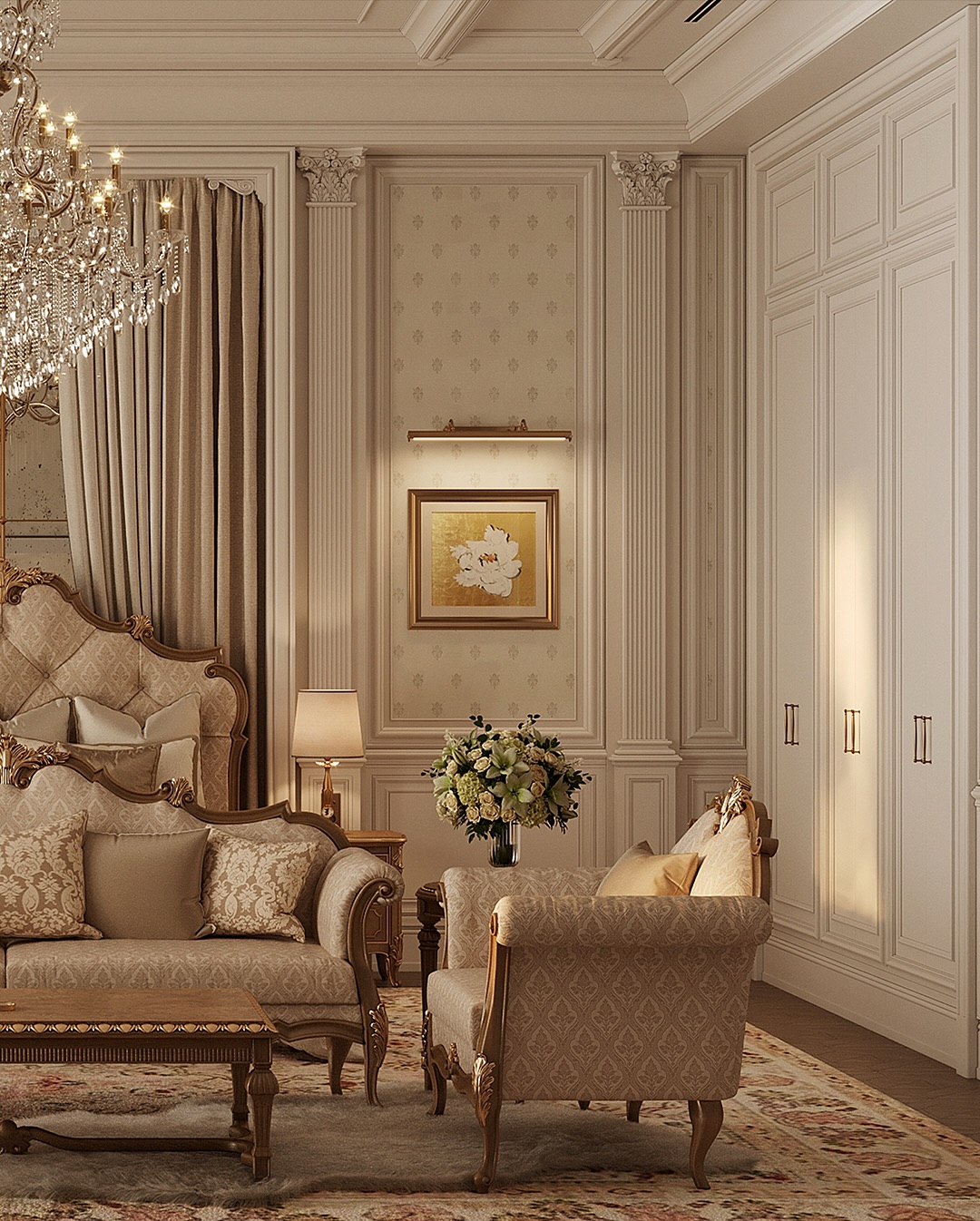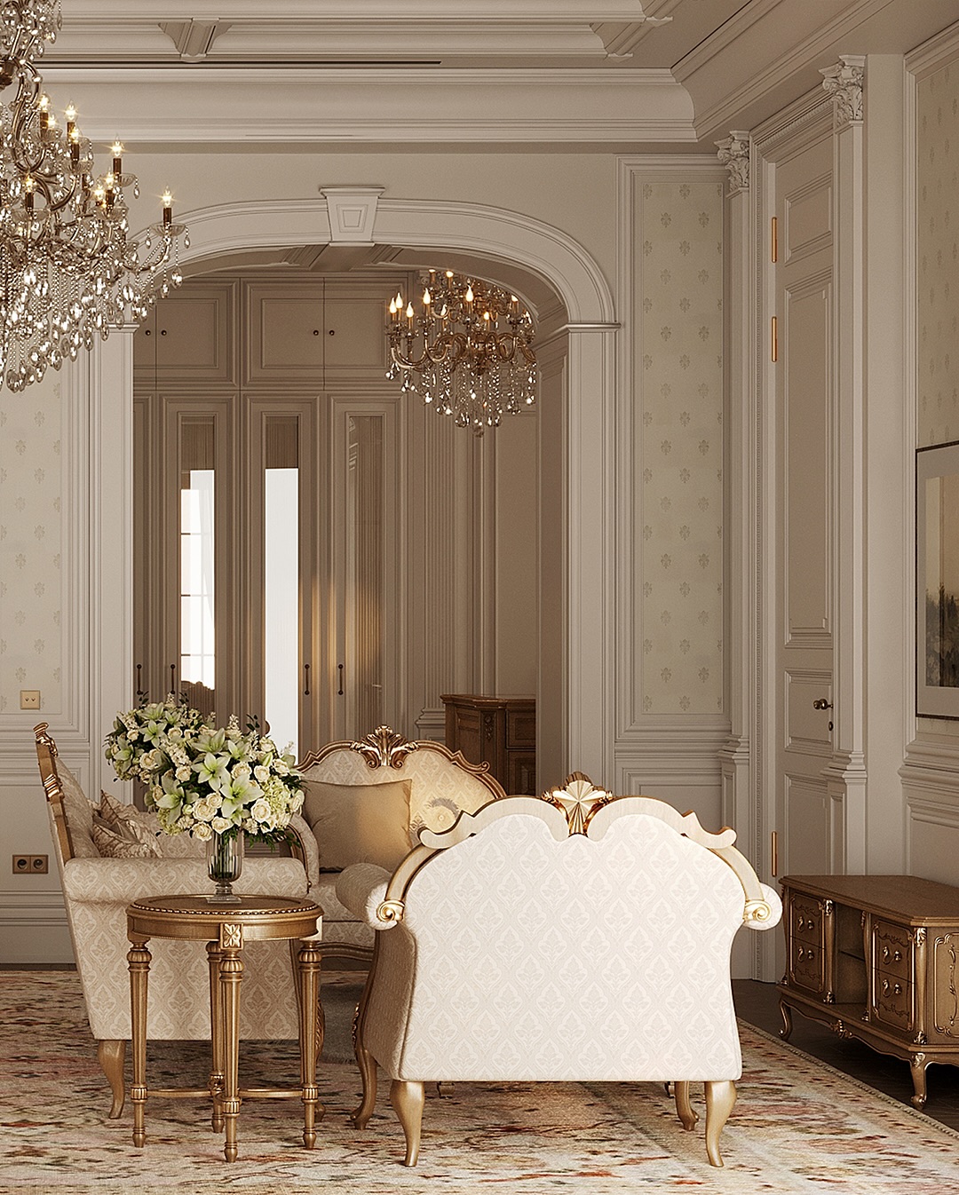 An exquisite blend of classic charm and modern luxury in a timeless interior design.