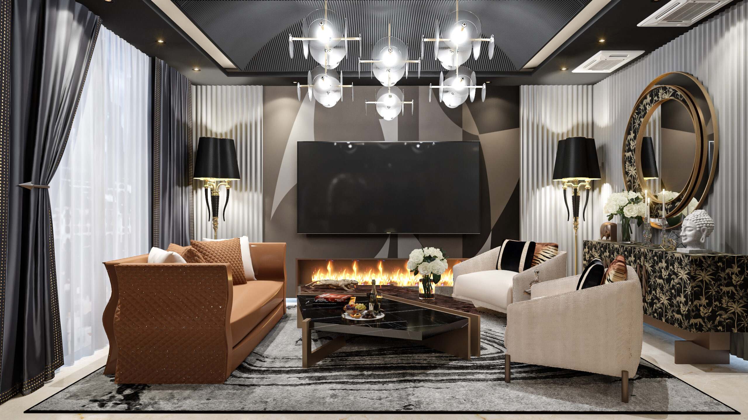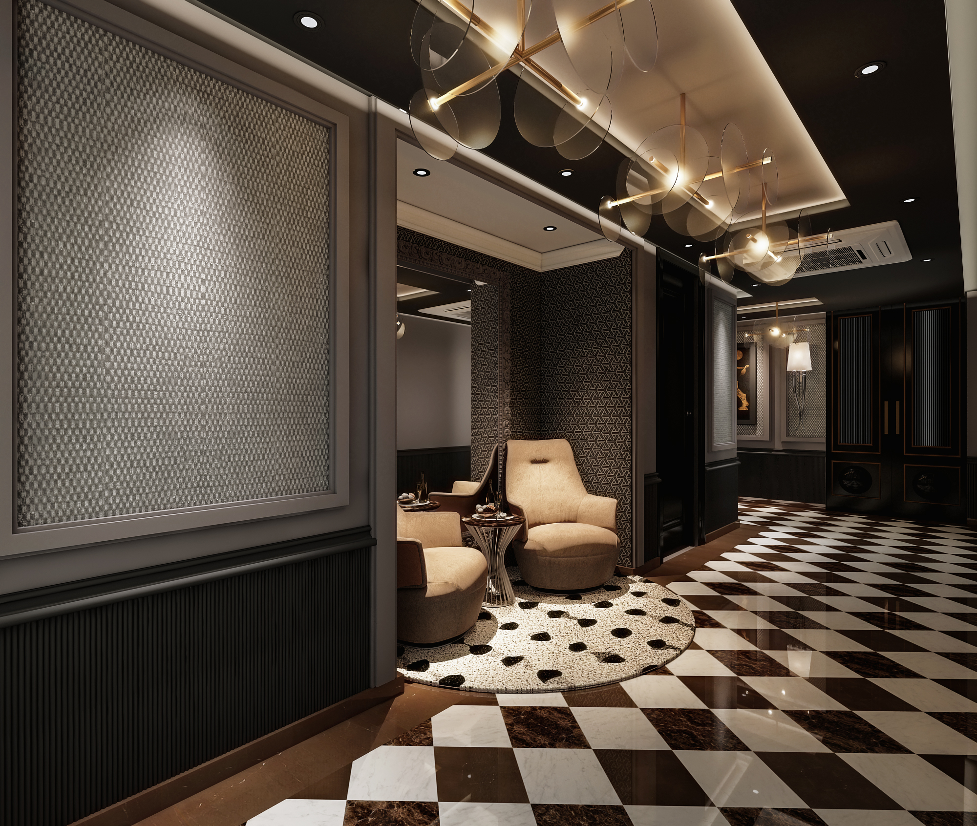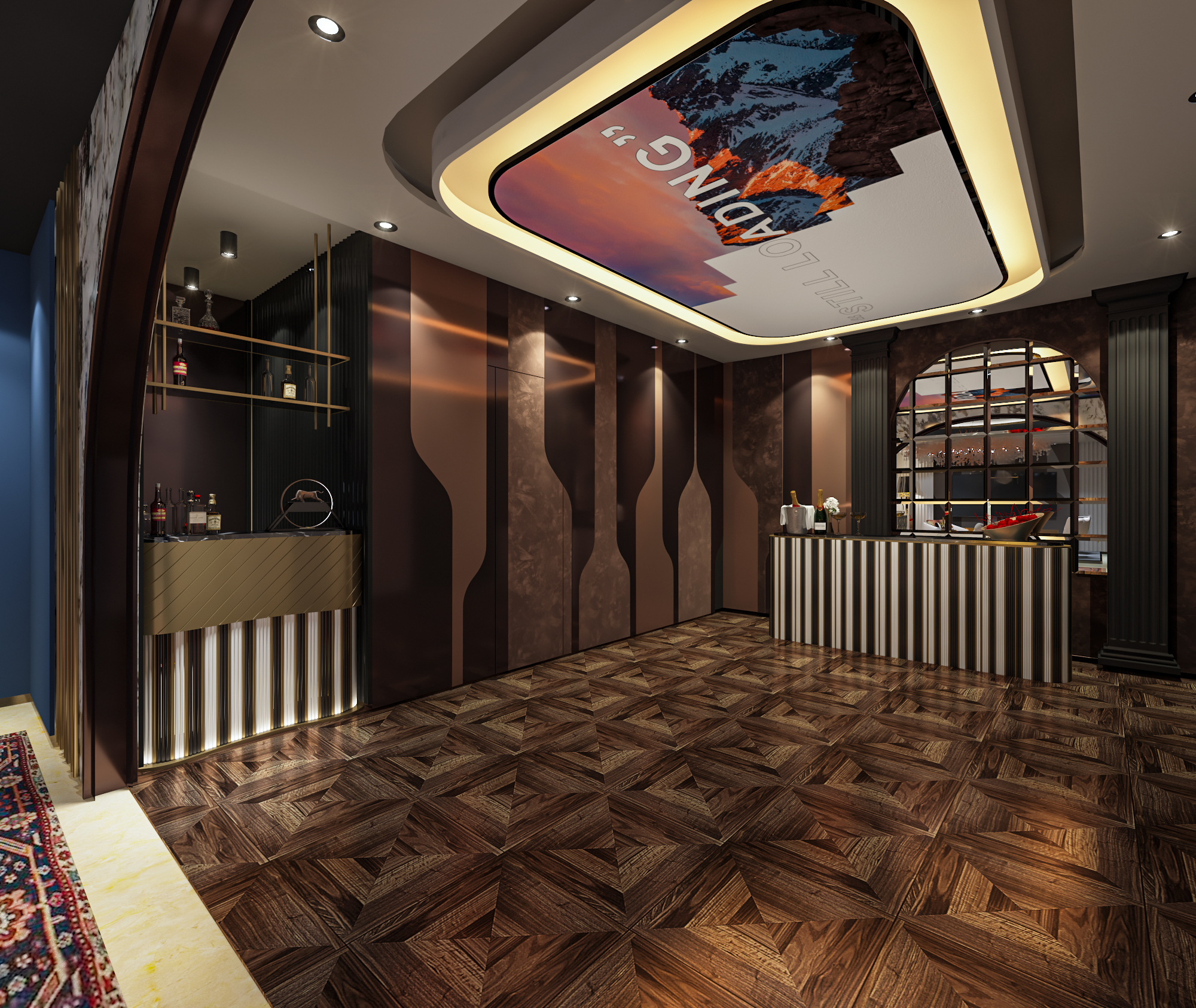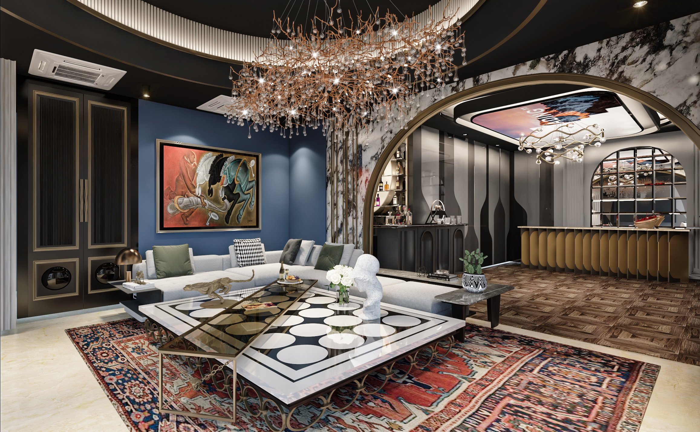 A premium interior design project blending modern aesthetics with elegant detailing. This space features a stylish lounge, custom bar setup, artistic décor, and high-end finishes designed for comfort and sophistication.